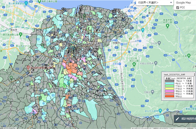 自動車検査情報(個人情報は含まない)を用いて商圏分析を実施し、