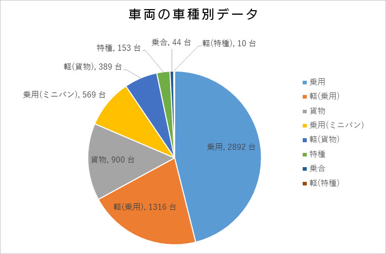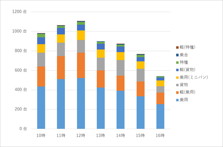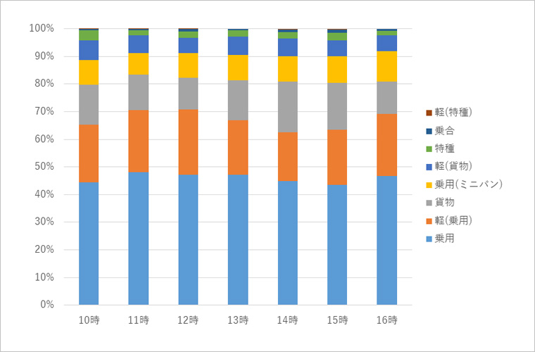 指定の道路を通過した車両を車種別に分析した結果のイメージ